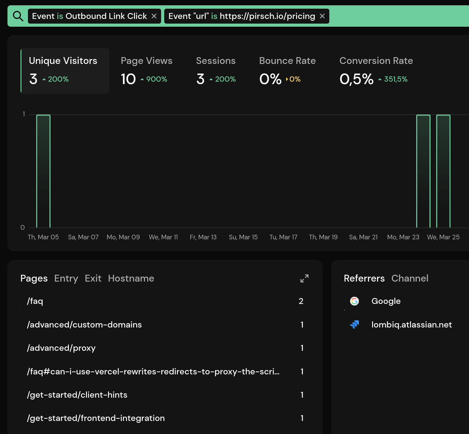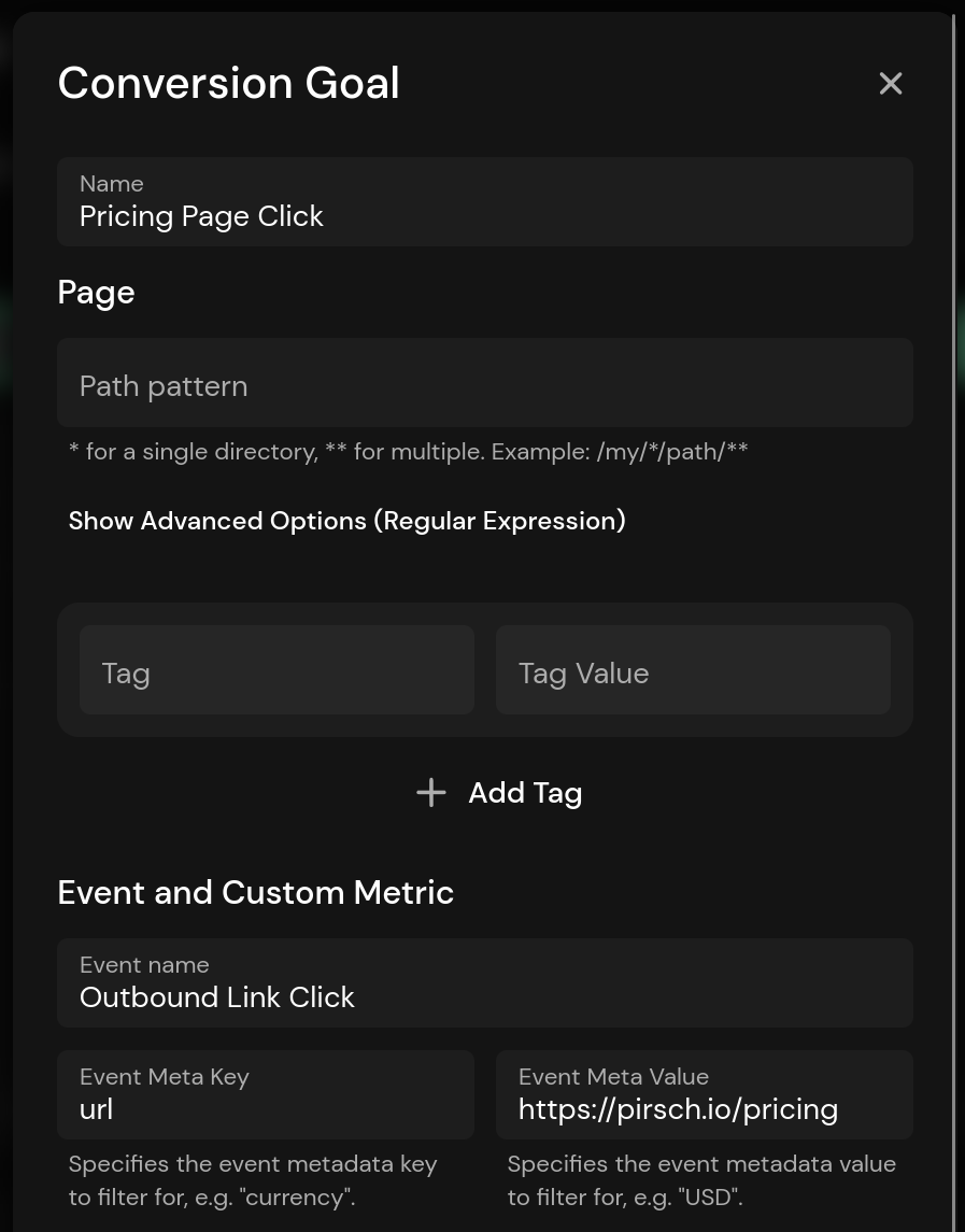 Is it possible to record an event or goal based on a specific Outbound Link Click url?